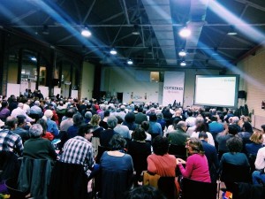 Ada Colau llegeix el manifest de suport a Mas, Colau i Rigau