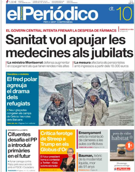 'Sanitat vol apujar les medicines als jubilats' i 'Ara toca referèndum'