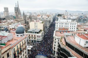 Vista aèria espectacular de la multitudinària manifestació per l'acollida de refugiats