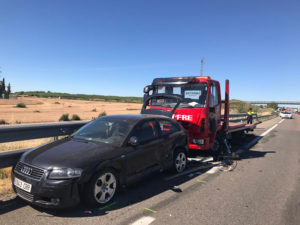 AMPLIACIÓ:Mor el tècnic d’una grua que assistia un altre cotxe en un accident amb un camió implicat a l’A-2 a Alcarràs
