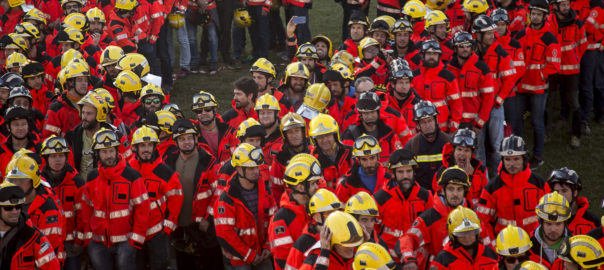 Els bombers exigeixen la llibertat dels presos polítics amb un llaç gegant desintoxicació