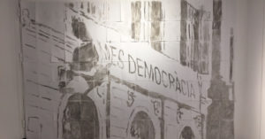 Domàs "Llibertat Presos Polítics" amb la il·lustració dels Jordis
