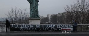 Domàs "Llibertat Presos Polítics" amb la il·lustració dels Jordis
