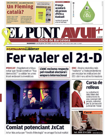 Les portades dels diaris: 'Fer valer el 21-D' i 'Pensions a la corda fluixa' llibre perseguit