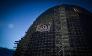 El CDR de Brussel·les col·loca una urna de l'1-O i llaços grocs davant de la Comissió Europea llibre perseguit