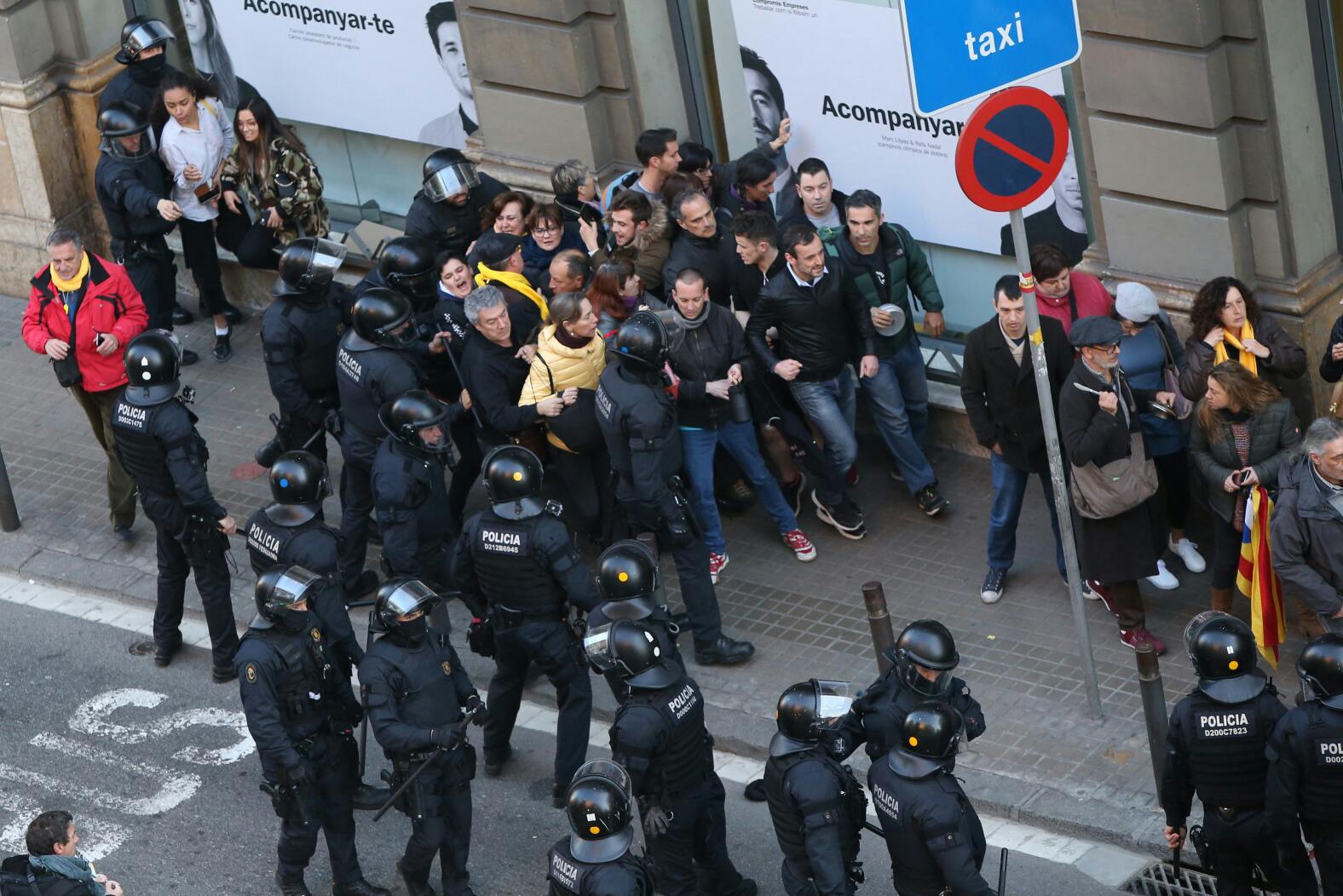 La policia talla la Via Laietana on es van concentrant milers de persones · Primera càrrega dels Mossos contra un grup que havia aconseguit arribar al Palau