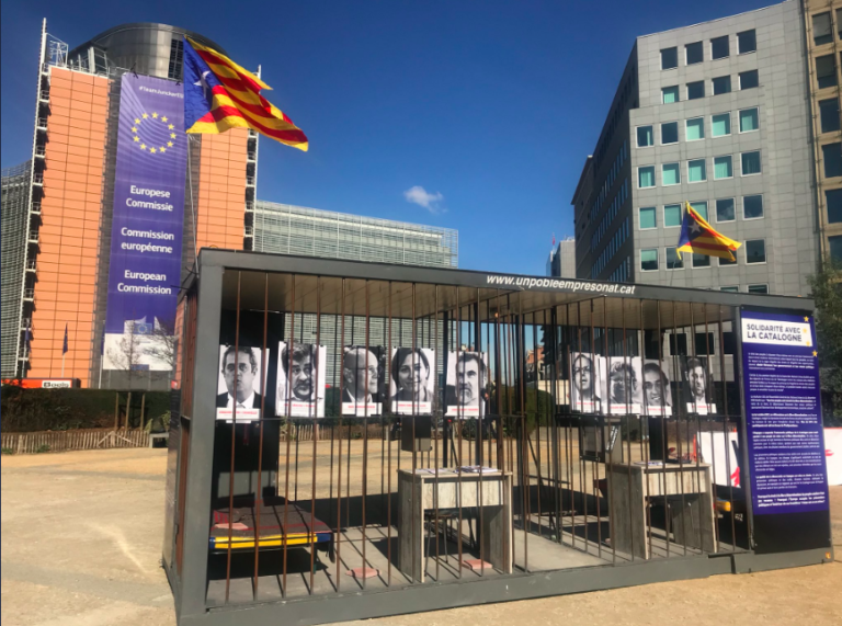 La presó itinerant que denuncia la repressió espanyola arriba a la Comissió Europea