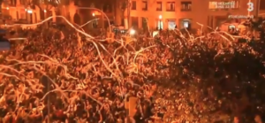 [VÍDEO] Espectacular llançament de paper higiènic de milers de manifestants al carrer Marina