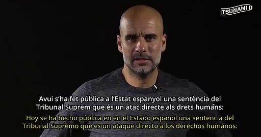 Pep Guardiola reads a protest statement addressed to the international community