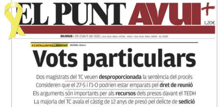 Les portades: "Dos jutges del TC desmunten la sentència del procés" i "L'esquerra s'enfronta a una catarsi si no derrota Ayuso"