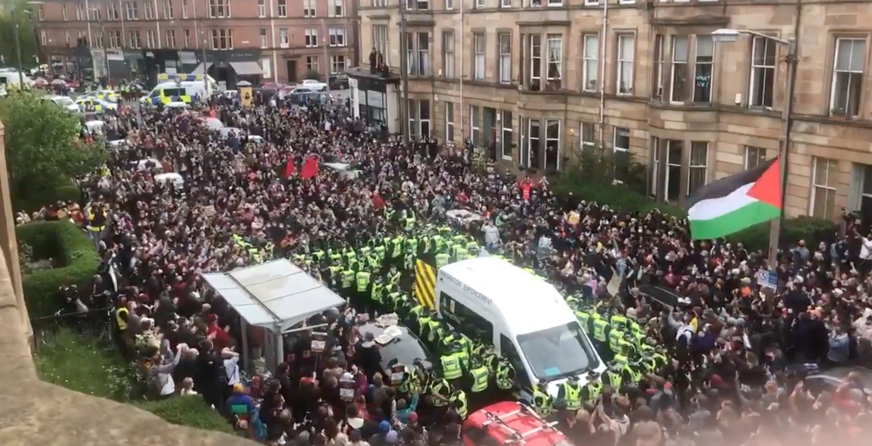 Centenars de veïns de Glasgow eviten una deportació blocant un vehicle policíac entrevista